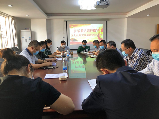 3月17日,区委书记罗军到区人社局调研分管常委抓党风廉政建设履职情况,督导指导区人社局党风廉政建设工作,区委常委、区纪委书记、区监委主任何峻峰等领导参加调研。