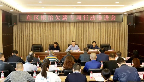 会上,区人社局党组书记、局长陈冬兵传达了全国、省、市根治欠薪冬季专项行动动员部署会议精神,安排部署东区根治欠薪冬季专项行动工作;区住建局、东区公安分局、兴东集团结合各自主管行业领域在根治拖欠农民工工资工作中存在的突出问题及下一步工作措施作了发言。