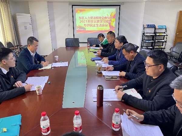 会议邀请东区人大常委会副主任蒲雄泉、区委组织部相关同志到会指导。区人社局党组书记、局长陈冬兵主持会议。会议通报了2020年度科级领导班子民主生活会整改措施落实情况及取得的成效。陈冬兵代表局领导班子作对照检查,并作个人对照检查发言,接受其他班子成员批评。随后,其他班子成员依次作对照检查,开展批评与自我批评。