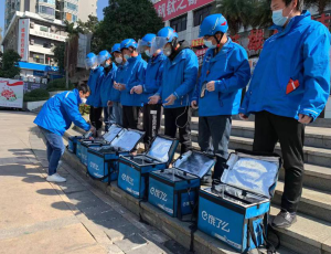 二是实施公开承诺。组织美团、饿了么等第三方平台签订《网络订餐第三方平台食品安全承诺书》,夯实配送企业主体责任。要求外卖平台严格按照新冠肺炎疫情防控要求管理配送人员,做好人员健康情况排查,增加对车辆、配送容器的消毒频次,并做好相关记录台账,在箱体外显眼位置粘贴绿色的“餐箱已消毒”标识牌。