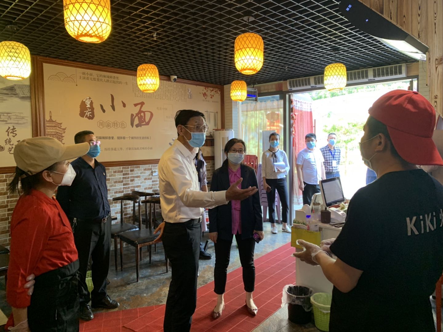 对谭鸭血老火锅、百杏厨房中环店、廖姐小吃店、沐鑫小餐馆等餐饮单位的疫情防控措施和食品安全进行了全面而深入的调研。区委副书记凌永航与副区长陈利对餐饮单位复工复业所面临的具体问题进行了询问、分析,并提出了具体的建议和要求,希望各监督管理部门根据当前疫情防控发展趋势变化,监管和服务并举,推进全方位的监管。