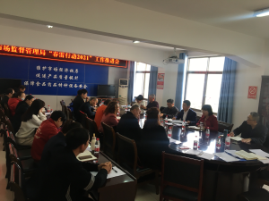 食品药品安全总监向思杰传达了省、市两级“春雷行动2021”工作推进会会议精神,并就行动总目标结合当前行动开展情况提出几点工作要求:一是要把握时间,清库存;二是要团结协作,抓亮点;三是要弘扬正气,出经验。