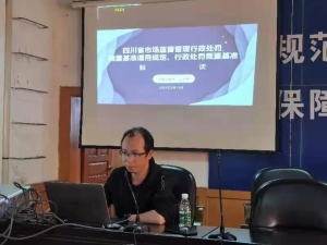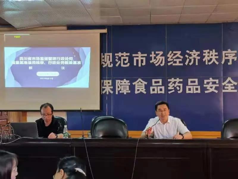培训会上,政策法规股股长周玉峰以《四川省市场监督管理行政处罚裁量基准适用规定、行政处罚裁量基准解读》为题,对《四川省市场监督管理行政处罚裁量基准》和《四川省市场监督管理行政处罚裁量基准适用规定》等内容,以典型案例说法,深入浅出的进行了为时90分钟的政策解读。