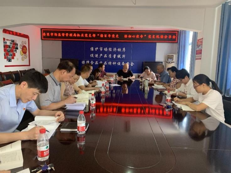 回顾党的光辉历史,歌颂党的丰功伟业。为扎实开展党史学习教育,热烈庆祝中国共产党成立100周年,激励党员干事创业的热情,4月29日下午,东区市场监督管理局机关党支部开展了“读百年党史,悟初心使命”悦读分享会,掀起了新一轮党史学习热潮。
