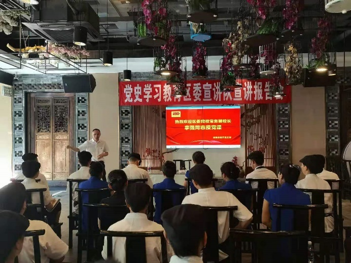 在宣讲中,李强同志带领大家回顾了中国共产党在革命、建设、改革开放和新时代的百年伟大奋斗历程,党带领全中国人民披荆斩棘从站起来到富起来再到强起来的拼搏奋进史,讲述了建党以来取得的伟大成就,阐释了党的宝贵历史经验。报告理论联系实际,结合东区消费环境建设、市场主体经营发展的具体情况,进一步带动大家学懂弄通百年党史,明悟初心使命,在实现祖国富强、民族复兴的道路上继续奋勇前进。