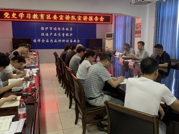亢健从“深入学习领会习近平总书记关于党的历史的重要论述,充分认识开展党史学习教育的重大意义”“认真研读党史基本著作,全面了解中国共产党百年奋斗的光辉历程和历史性贡献”“深刻把握开展党史学习教育的重点”“学懂 弄通做实习近平新时代中国特色社会主义思想”“全面落实中央、省委部署,扎实开展党史学习教育,创新实施‘大学习、大讨论、大谋划、大落实’行动”等五个方面进行了全面深刻的讲解,要求市场监管干部职工坚定理想信念,强化政治判断力、政治领悟力和政治执行力,切实做到学史明理、学史增信、学史崇德、学史力行,激励大家把党史学习教育成果转化奋进新征程的动力,为东区“十四五”开好局、起好步作出新的更大贡献。