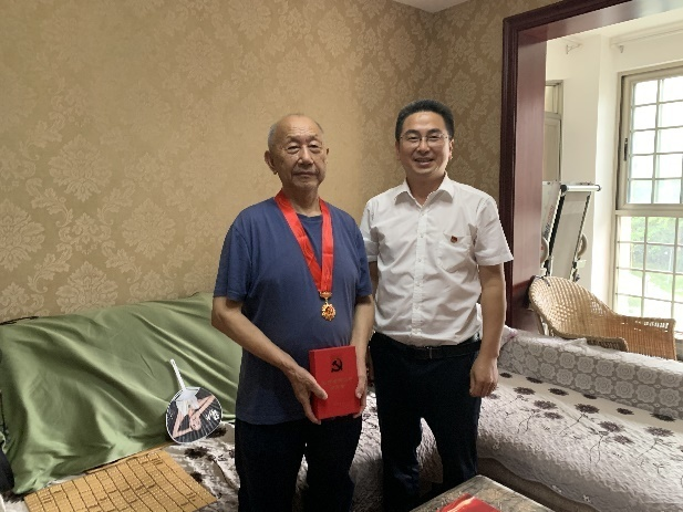 荣誉送到家。老党员杨学文作为“光荣在党50年”纪念章获得者之一,因身体健康原因,未能参加东区市场监督管理局举行的纪念章集中颁发仪式,东区市场监督管理局党委书记、局长李勇将纪念章送到杨学文家中,为他戴上这枚荣誉勋章,向他致以亲切问候和崇高敬意。“这枚纪念章,是党对我们老同志的关心厚爱,感谢党中央的关怀!感谢局领导念着我们这些老同志,局里工作这么忙,还专程给我们送来纪念章,非常感动!”戴上纪念章,杨学文激动万分,表达了自己对党的忠诚和对局党委的感谢。