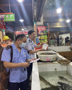 二是凝聚执法合力,强化部门执法协作。联合公安、交通农水部门等开展联合执法检查,实现上下游产业全链条查处、线上线下全覆盖查处,及时、有效地打击市场销售长江流域非法捕捞渔获物的各类违法行为。是否履行索证索票、进货查验、记录购销台账等义务,是否贮藏、销售、加工有来自长江及支流野生渔获产品,招牌、菜单及广告单是否存在违法使用“河鲜”“江鲜”等内容。