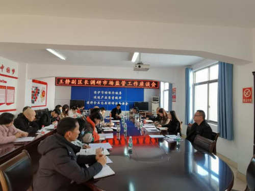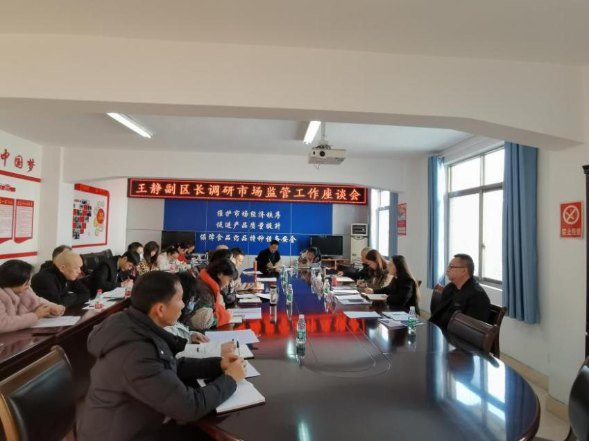 12月27日上午,东区政府副区长王静到区市场监管局调研指导2021年市场监管工作情况以及2022年工作安排并召开座谈会。区市场监管局全体领导班子成员、中层以上干部参会。