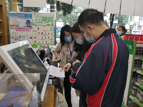 王静副区长先后来到了药品经营企业一心堂东区店、特种设备使用单位野猪林肉联食品厂、食品经营企业百盛超市,对疫情防控、食品安全、特种设备安全进行调研检查,现场向执法人员详细了解了日常监督检查频次、重点检查内容、风险点等。在药店,重点查看了企业疫情防控措施落实情况、规范经营药品情况, 对退烧、抗病毒、抗感染等 药品实名销售登记情况进行了现场抽查。在特种设备使用单 位,详细询问了解了液氨制冷等特种设备的检验情况、企业应急演 练、安 全生产培训等情况。在食品经营企业,查看了企业冷链食品管理 、进货查验、价格公示、食品储存等情况。