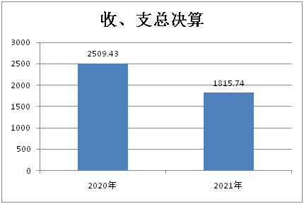 2021年度收、支总计1815.74万元。与2020年相比,收、支总计各减少693.69万元,减少27.64%,主要变动原因是本年度根据实际工作安排,对企业补助相对去年有所减少。