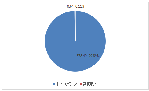 2018年本年收入合计579.12万元,其中:一般公共预算财政拨款收入578.49万元,占99.89%;其他收入0.64万元,占0.11%。