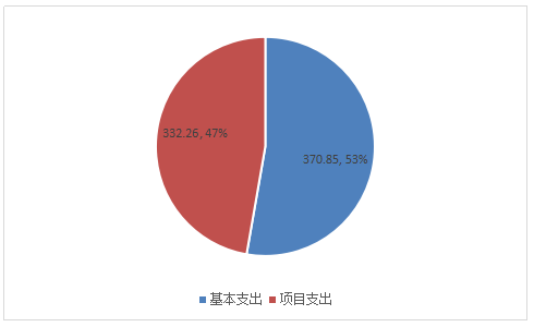 2018年本年支出合计703.11万元,其中:基本支出370.85万元,占53%;项目支出332.26万元,占47%。