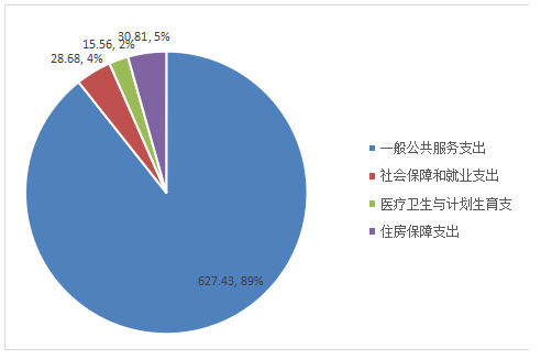 2018年一般公共预算财政拨款支出702.48万元,主要用于以下方面:一般公共服务支出627.43万元,占89%;社会保障和就业支出28.68万元,占4%;医疗卫生与计划生育支出15.56万元,占2%;住房保障支出30.81万元,占5%。