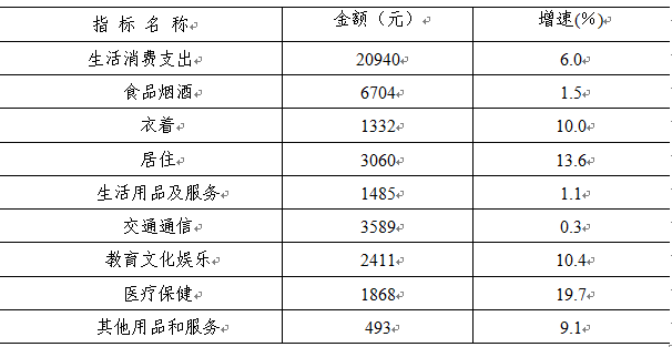前三季度东区城镇居民人均生活消费支出为20940元,同比增长6.0%,较去年同期人均增加1189元。八大类消费支出呈现全面上扬趋势。详见下表:
