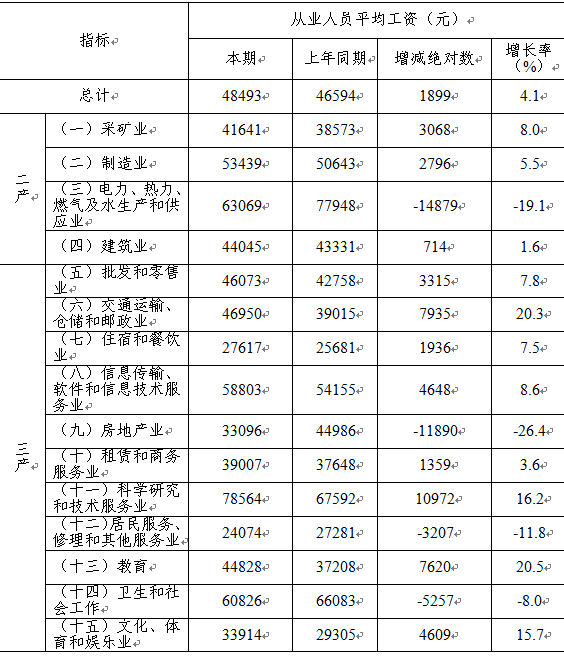 2019年前三季度从业人员平均工资48493元,同比上涨4.1%。