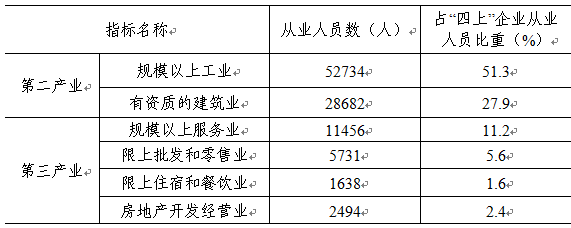 (二)“四上”企业吸纳就业人数达102735人,第二产业从业人数最多