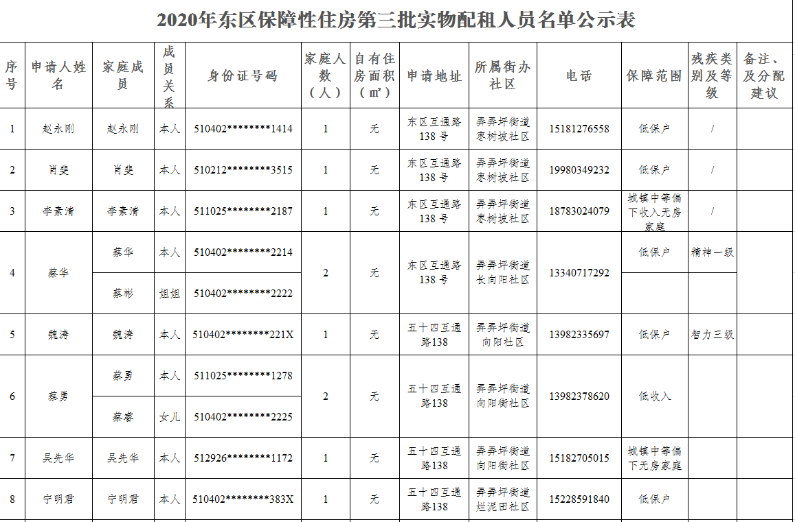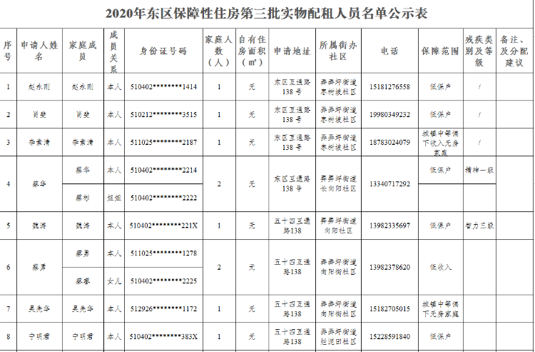 附件:2020年东区保障性住房第三批实物配租人员名单公示表