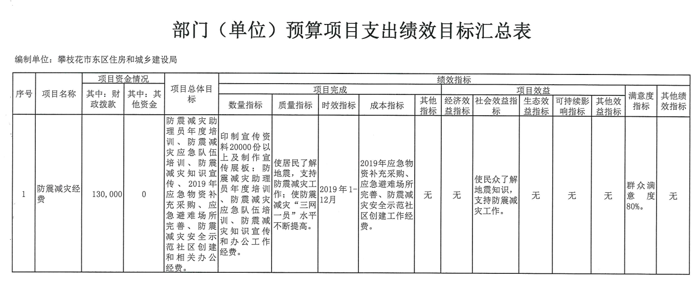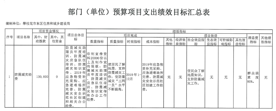 东区住房和城乡建设局预算项目支出绩效目标汇总表